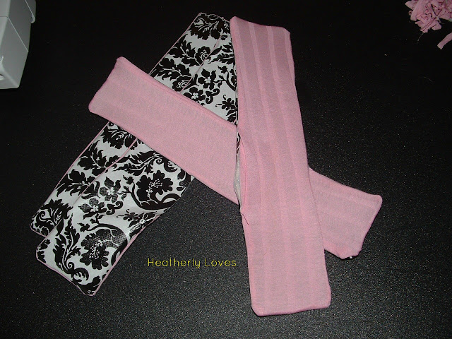 Then I took the other fabric I wanted on it and laid them together with right sides touching. Pinned the fabric together and cut out the other pieces. The pink I used was a very movable jersey... I didn't like sewing with it very much. But I was making this what I already had at home.