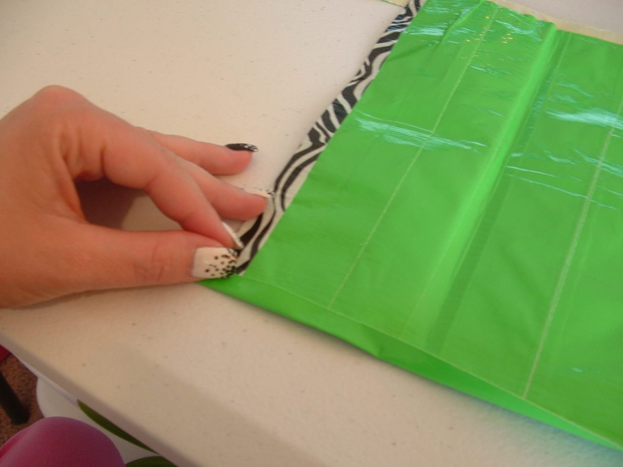 Next you will unfold the wallet and take more duct tape thats long enough for both sides and rip it in half lengthwise and make a seam for the sides of the wallet. Make sure you over lap on the pockets again.