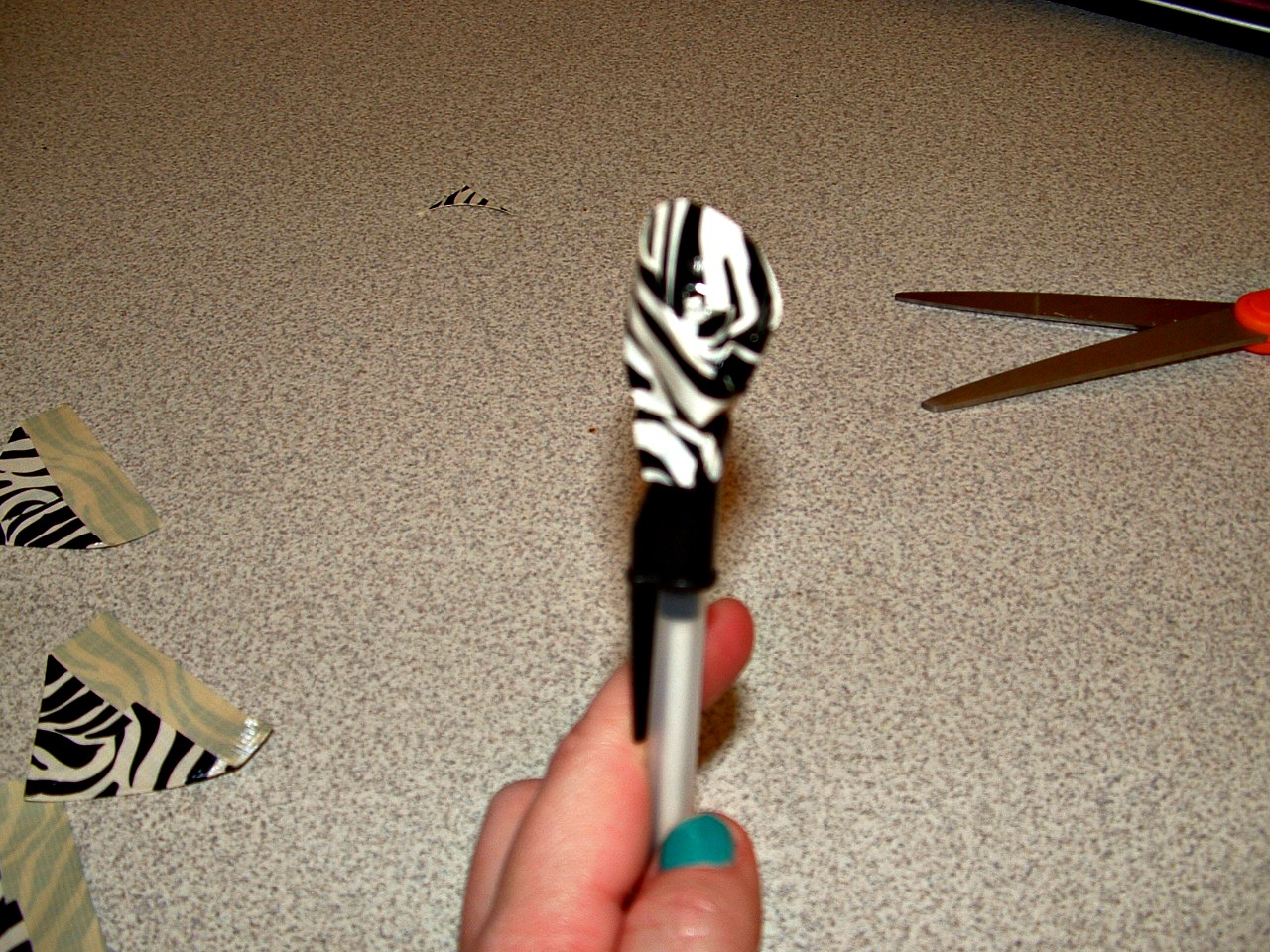 First cover the cap of your pen with some Duct Tape. You can do it on the end of a non "clicky" pen.