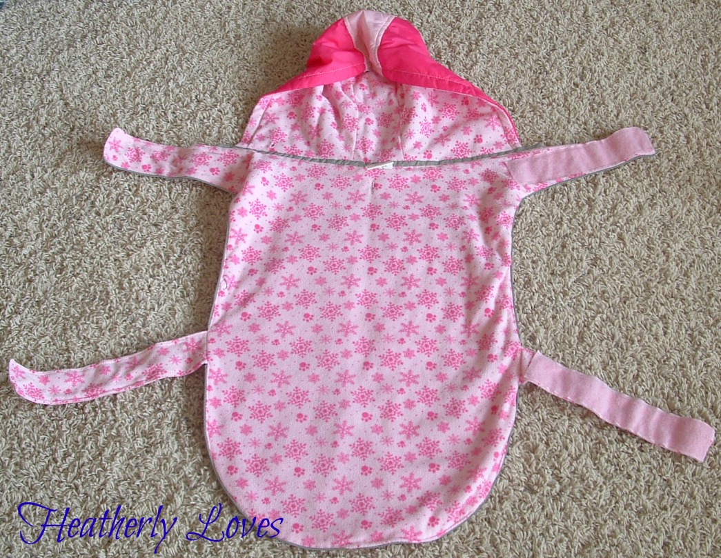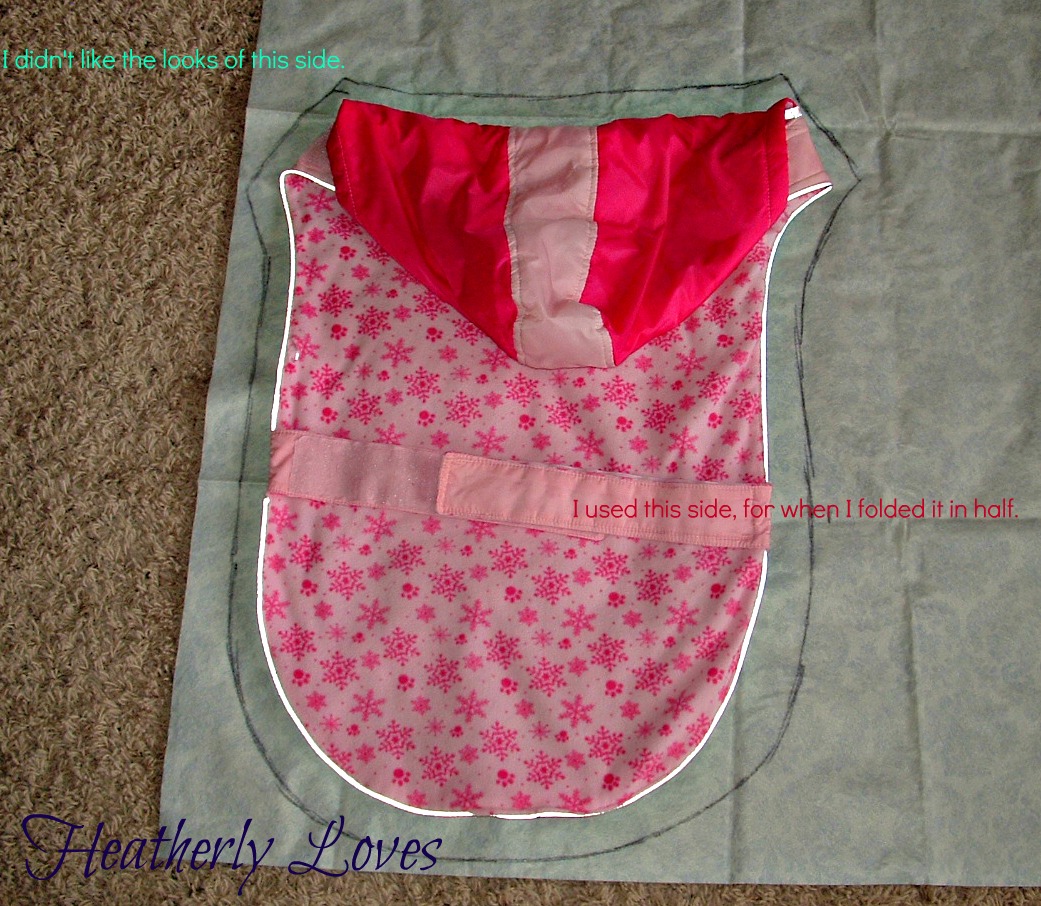 What I did was lay her coat out onto the fabric I wanted to use. Only thing was when I drew around to make the pattern I did not like on side. So I fold it in half and just cut around the side I did like. I gave myself about and inch seam allowance. I did the same thing with her hood on the coat and cut two pieces out with it folded too.