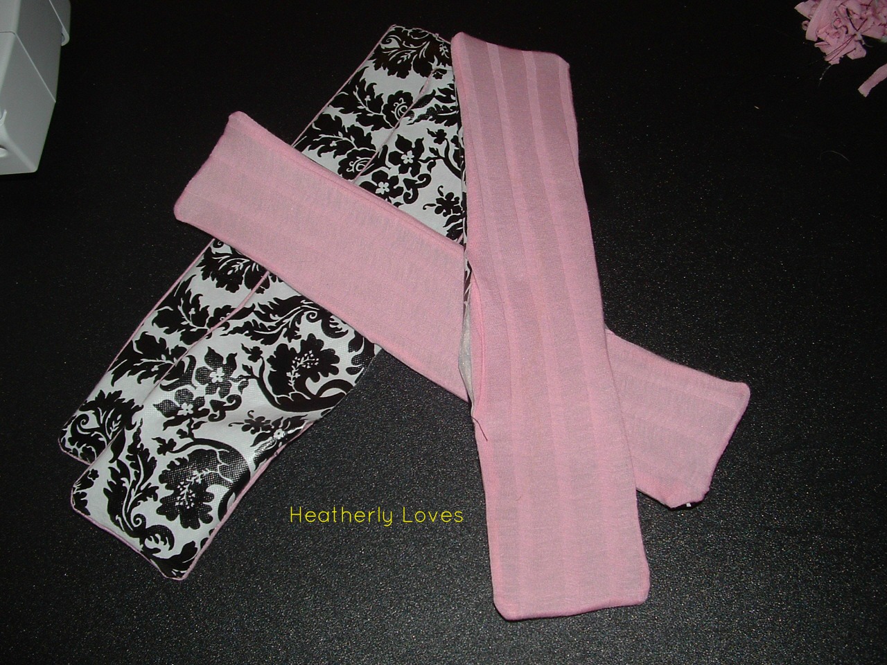 Next I took the straps on her winter coat and measured out 4 strips that will be used to wrap around the front of her neck and under her stomach. I pinned them right sides together sewed around them and left an opening to right side them out.
