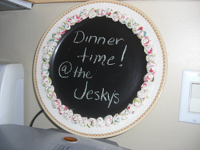 Third, you will take the tape off after its completely dry, now you have a chalkboard! Start writing away. I added decor around mine. I have a chicken and rooster kitchen so I added some fabric rolled flowers to match as well.
