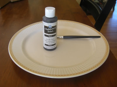 First, start by taking your item to paint and marking off with the paint tape. I used a platter that matches all my dishes, I have two of them. So I went ahead and decided why not have a chalkboard that matches.